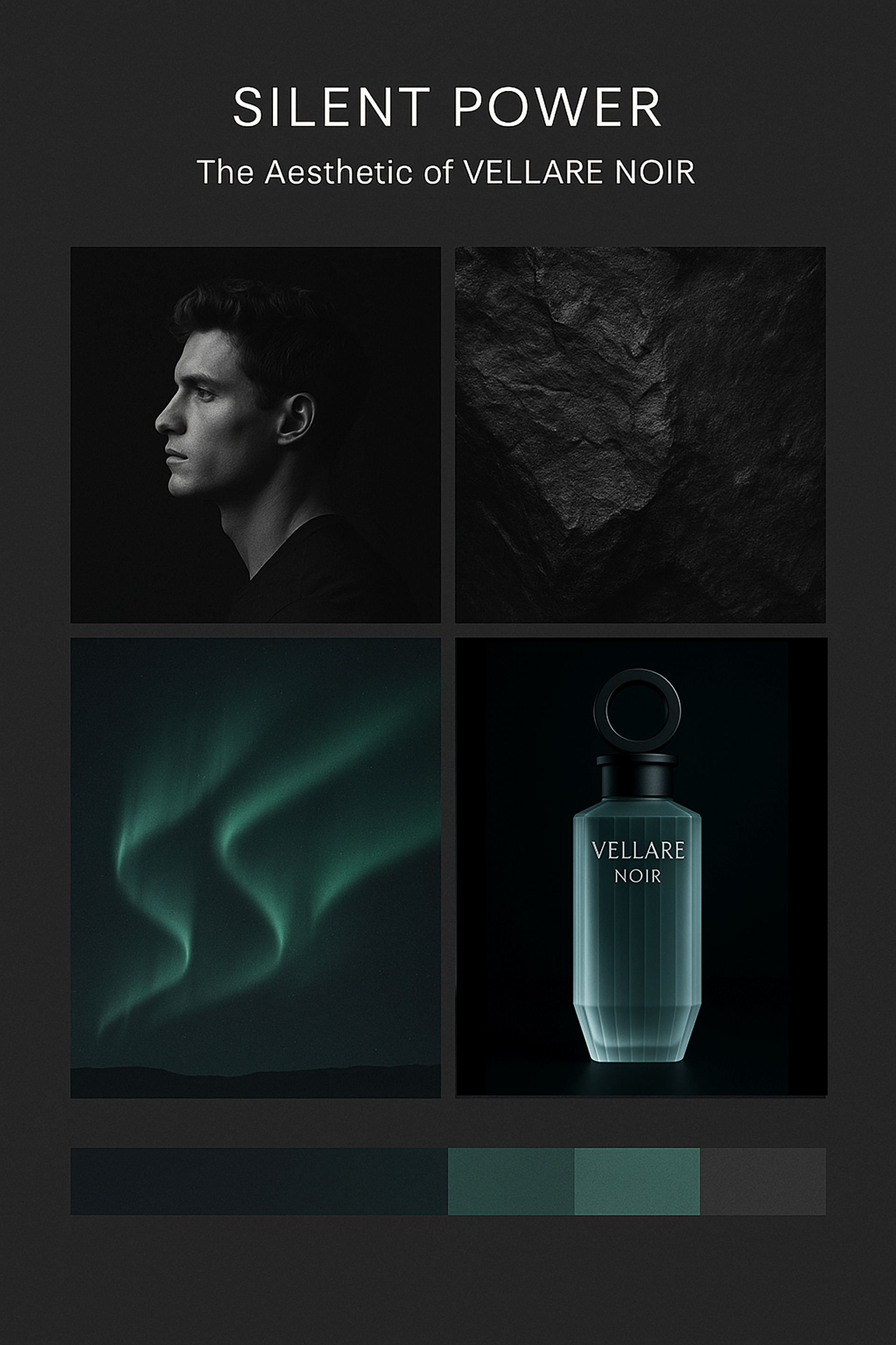 VELLARE NOIR is a conceptual fragrance design crafted to evoke modern masculinity through shadow, silence, and sculptural form. Using 3D rendering, cinematic lighting, and aurora-inspired overlays, the visual campaign explores strength through stillness, where power is defined not by presence, but by control.